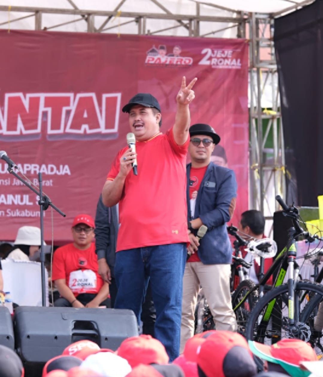 SUKABUMI,- Calon Gubernur Jawa Barat pasangan nomor urut dua, Jeje Wiradinata bersama Calon Bupati Sukabumi pasangan Iyos-Zainul nomor urut 1, menggelar kegiatan jalan santai bersama Partai Demokrasi Indonesia (PDI) Perjuangan di Kecamatan Nagrak, tepatnya di Lapang Jelegong, Desa Balekambang, Kabupaten Sukabumi, Minggu (6/10/2024).