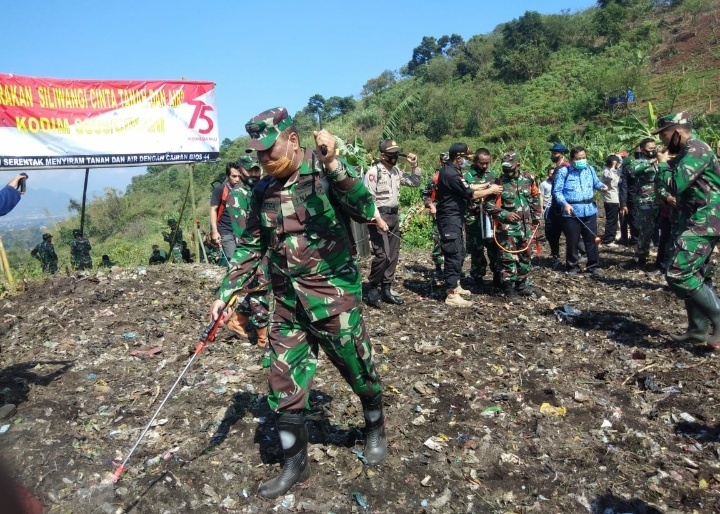 “Kegiatan ini merupakan salah satu upaya mengisi perayaan hari kemerdekaan RI dan sebagai rasa kepedulian serta keprihatinan Kodim 0609/Cimahi terhadap masyarakat sekitar tempat pembuangan sampah Cireundeu yang selama ini menjadi lahan yang tidak produktif,”ujar Tody disela kegiatan penyemprotan Bios 44DC di lahan eks pembuangan sampah Cireundeu, Senin (17/8/2020).