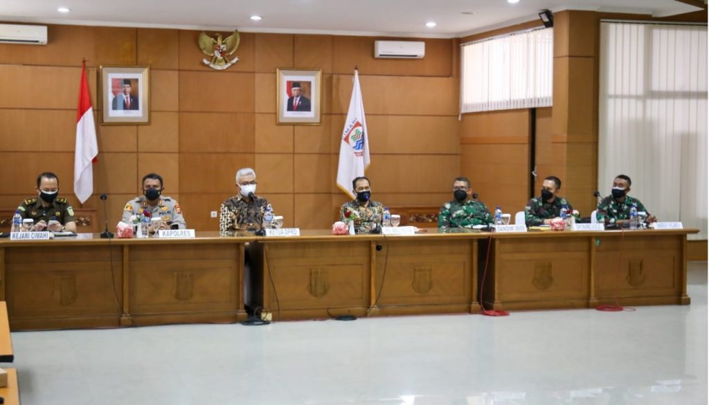 Hasanah.id, Kota Cimahi – Pemerintah Kota (Pemkot) Cimahi memutuskan segera menerapkan Pemberlakuan Pembatasan Kegiatan Masyarakat (PPKM) Darurat mulai 3 – 20 Juli 2021. Hal ini disampaikan Pelaksana Tugas (Plt.) Wali Kota Cimahi Ngatiyana usai memimpin rapat pelaksanaan PPKM Darurat dengan Forkopimda di Aula Gedung A dan juga sebelumnya memimpin Rapat Dinas Pelaksanaan PPKM Darurat Kota Cimahi dengan seluruh jajarannya bertempat di Plaza Rakyat, Jumat (2/07/2021).
