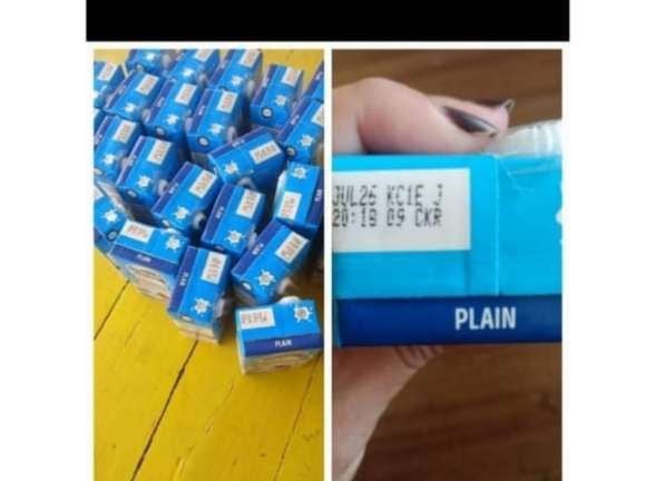 Dalam unggahan yang menjadi viral itu, tampak sejumlah kotak susu berwarna biru serta gambar close-up bagian bawah kemasan yang memperlihatkan kode produksi dan tanggal kedaluwarsa. Pengunggah menyoal minimnya pengawasan dari pihak penyelenggara MBG.