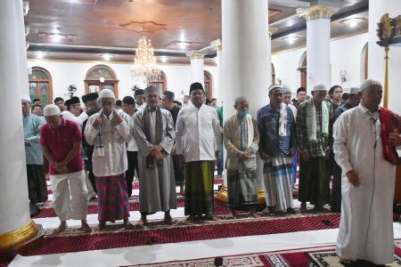 Bupati Sumedang H. Dony Ahmad Munir mengawali Salat Tarawih bersama para Kepala Perangkat Daerah dan warga di Mesjid Agung Sumedang, Jumat (28/2/2025) malam.