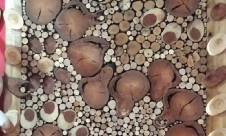 Seperti halnya yang dilakukan Soleh (43) warga jalan Usman Dhomiri RT 01 RW 17, Kelurahan Padasuka, Kecamatan Cimahi Tengah, Kota Cimahi. Ia memanfaatkan limbah kayu yang dipotong-potong lalu dirangkai dalam suatu bingkai hingga menjadi nilai seni yang unik.